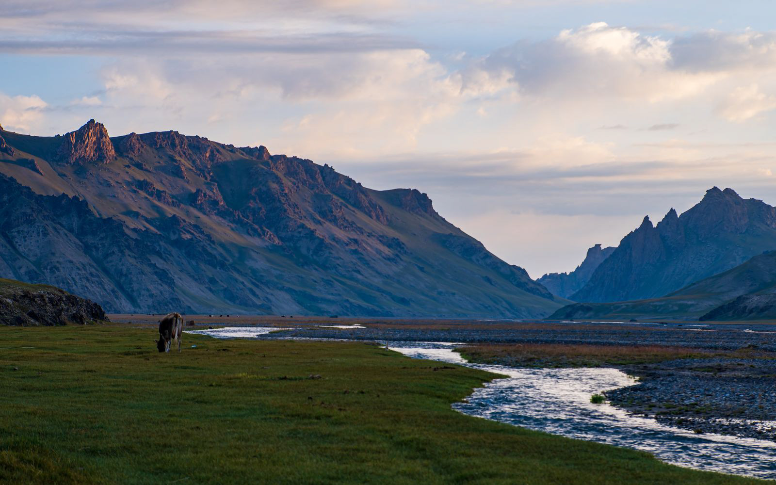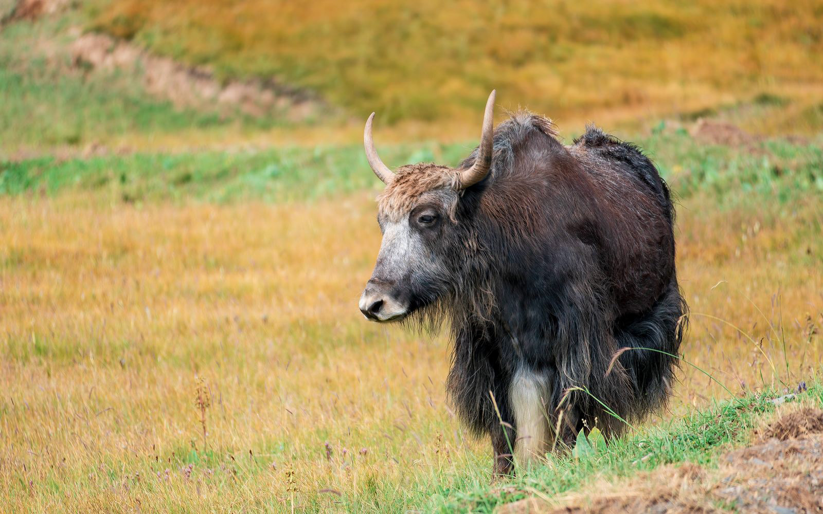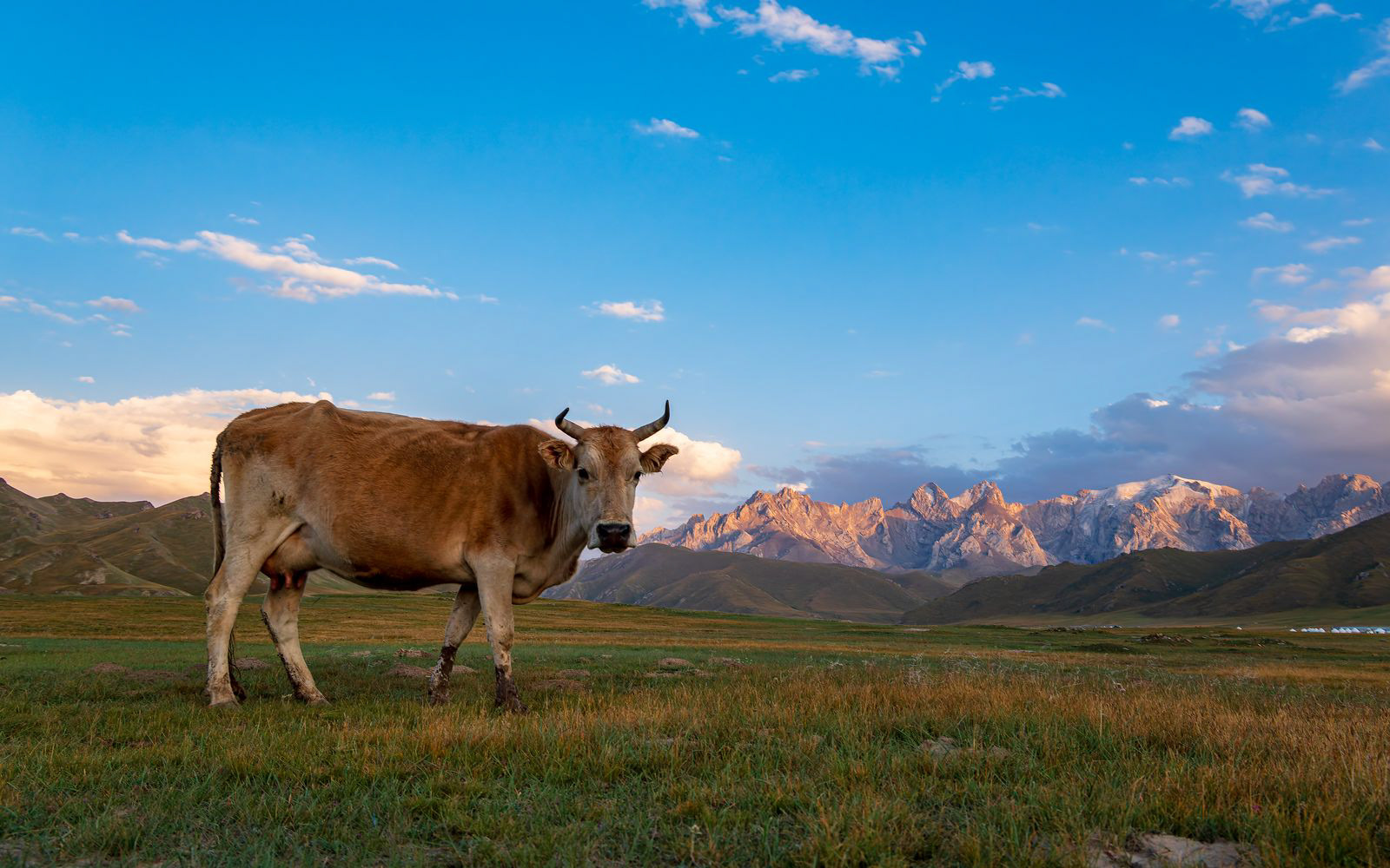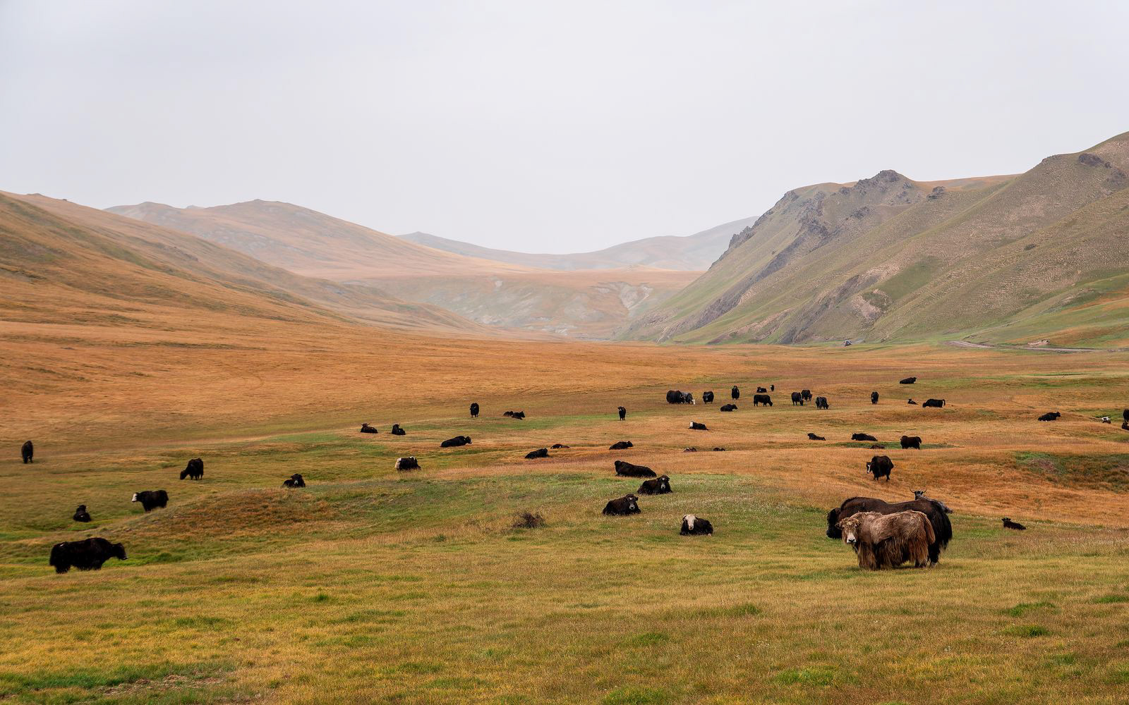 Am Nachmitag zeigte sich die Landschaft rings um das Camp bei schönem Licht. Und auch die Yaks, Pferde und Rinder geben ein schönes Motiv ab