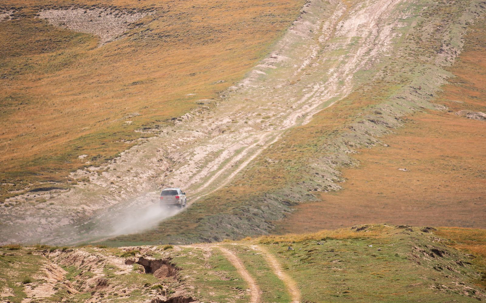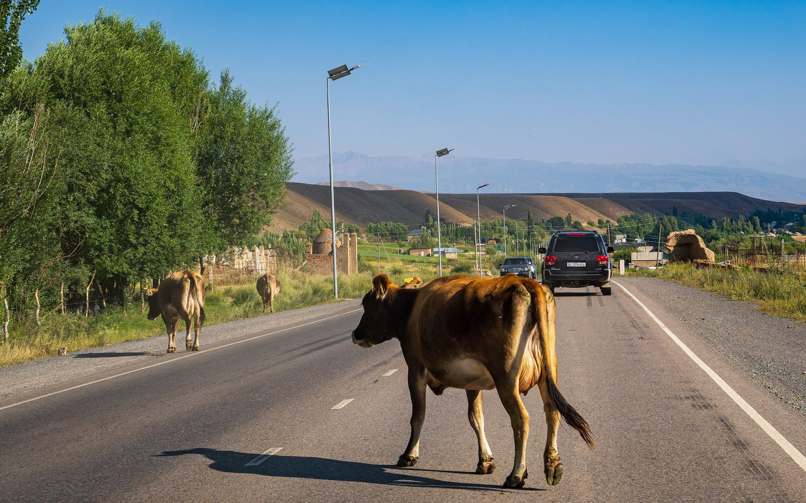 Über teils staubige Pisten geht es weiter nach Osh